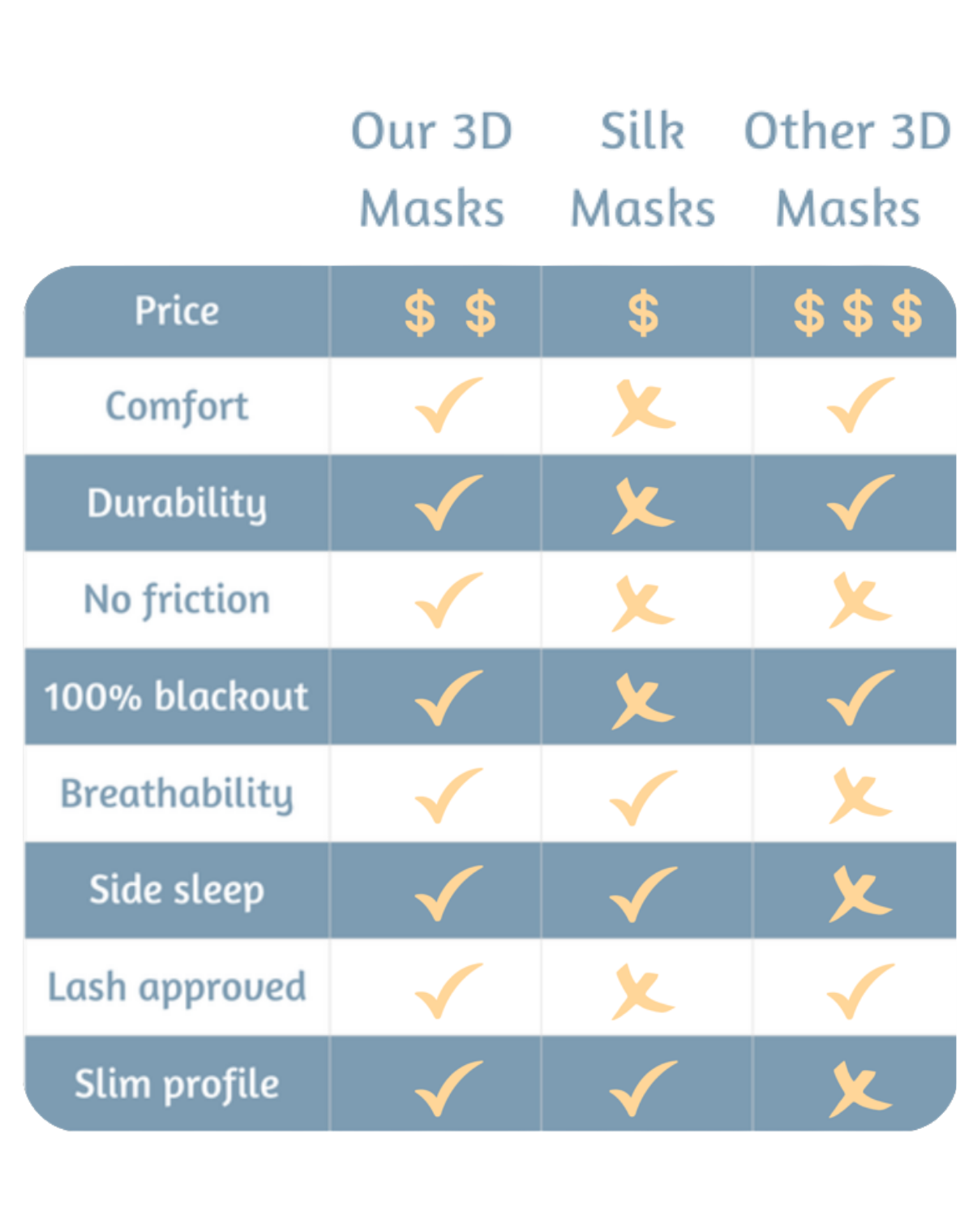 All purchases of the 3D adjustable sleep mask come with a set of free ear plugs. You have the option of black or right ear plugs and small or medium sized ear plugs. These sit flat, which are perfect for side sleepers.